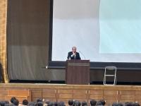 11月14日、創立140周年記念事業の一環として、2024年ノーベル平和賞を受賞した日本被団協の代表委員であり、本校卒業生である田中重光様に「被爆者の生きざまと願い」という演題でご講演いただきました。生徒達は田中様のお話に真剣に耳を傾け、核兵器の恐ろしさと同時に平和の尊さを考える貴重な機会となりました。