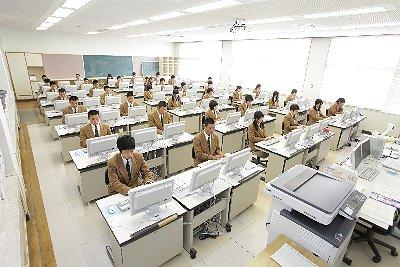 なお普通教室にも、全室に大型液晶モニターを完備し、パソコンによるプレゼンテーションソフトを用いた授業に対応できます。もちろんエアコン完備です。